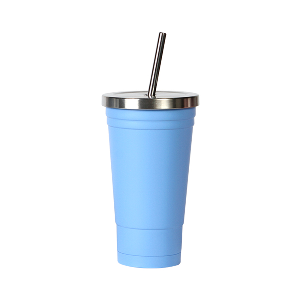 Vaso de acero inoxidable doble pared con tapa y popote metálicos, fabricado en materiales de grado alimenticio, mantiene bebidas frías o calientes por un largo tiempo, no usar en microondas, capacidad de 500 ml (17 oz) . Incluye caja de cartón individual.