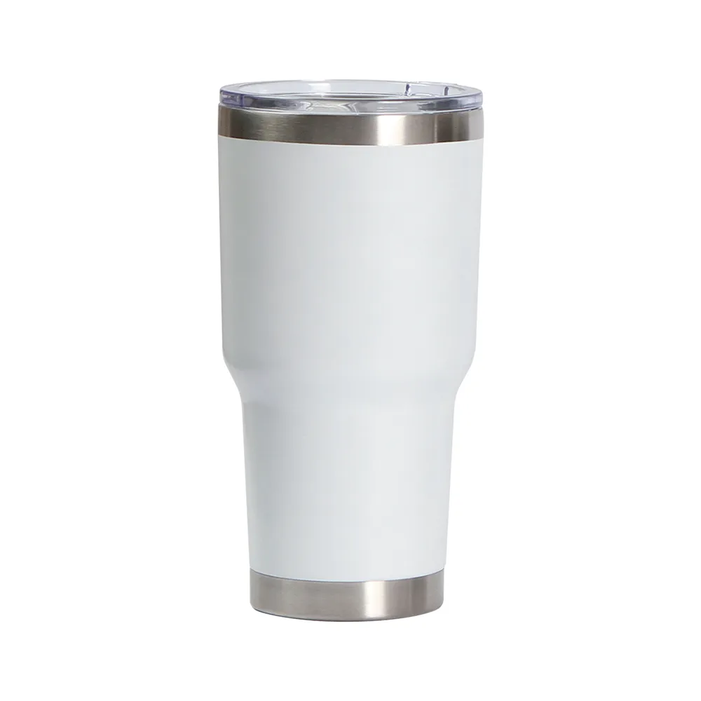 Termo de acero inoxidable doble pared acabado mate y detalles plateados en filo y base, con tapa deslizable de plástico transparente. Fabricado en materiales de grado alimenticio, mantiene bebidas frías o calientes por un largo tiempo. No usar en microondas. Capacidad de 850 ml. (29 oz) Incluye caja de cartón individual.