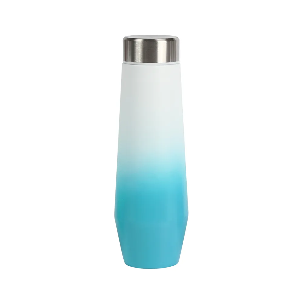 Termo bi-tono doble pared de acero inoxidable, con tapa metálica de rosca. Fabricado en materiales de grado alimenticio, mantiene bebidas calientes por un largo tiempo, no usar en microondas. Capacidad de 530 ml. Incluye caja de cartón individual.