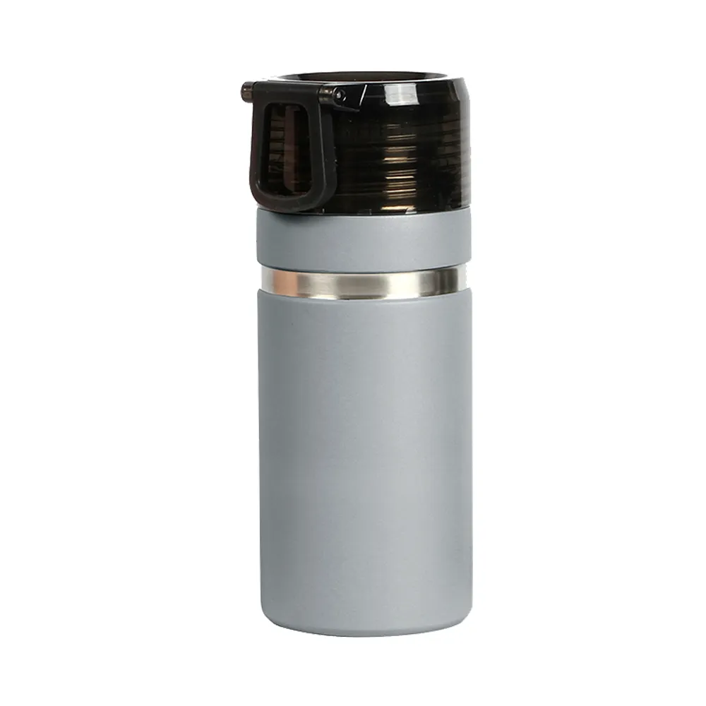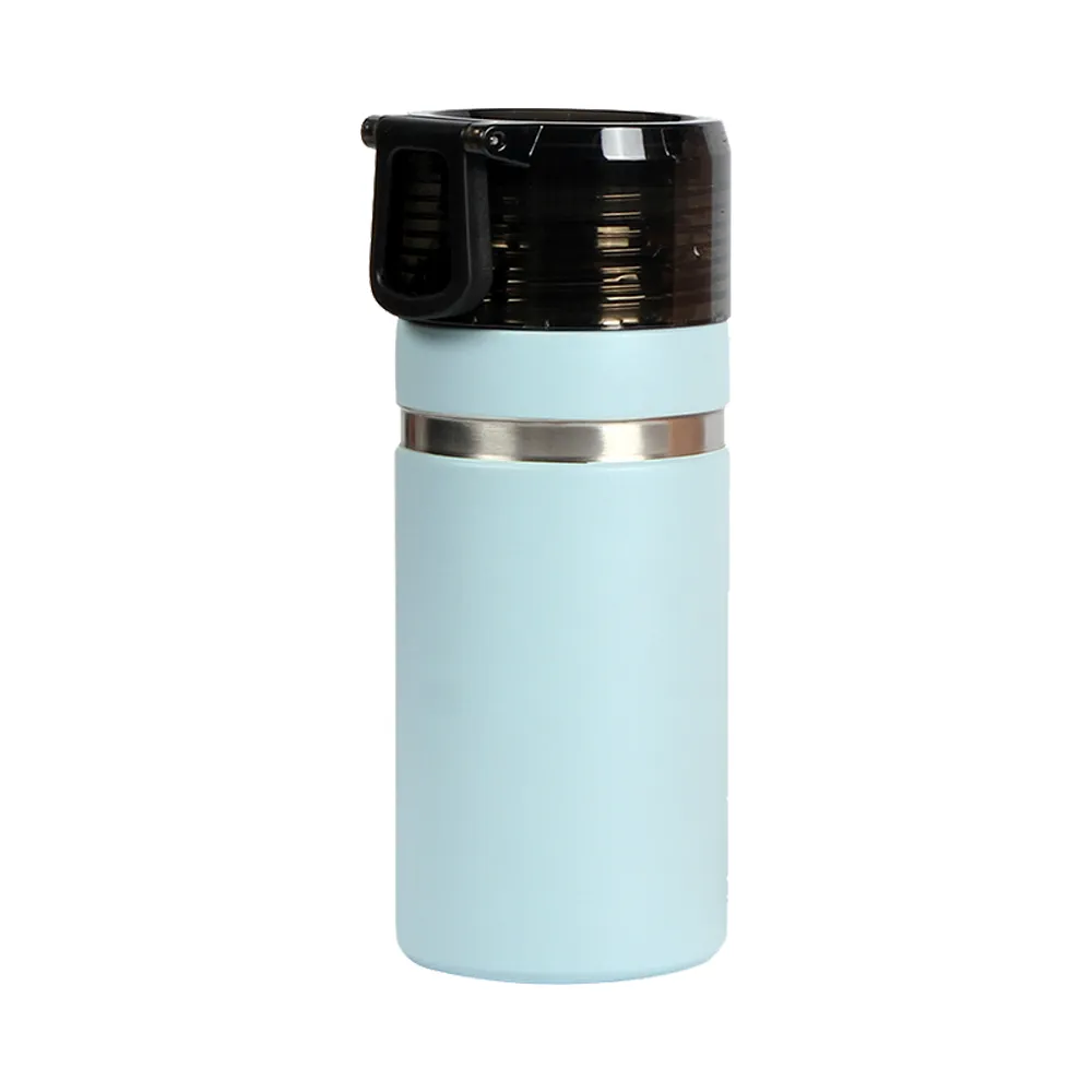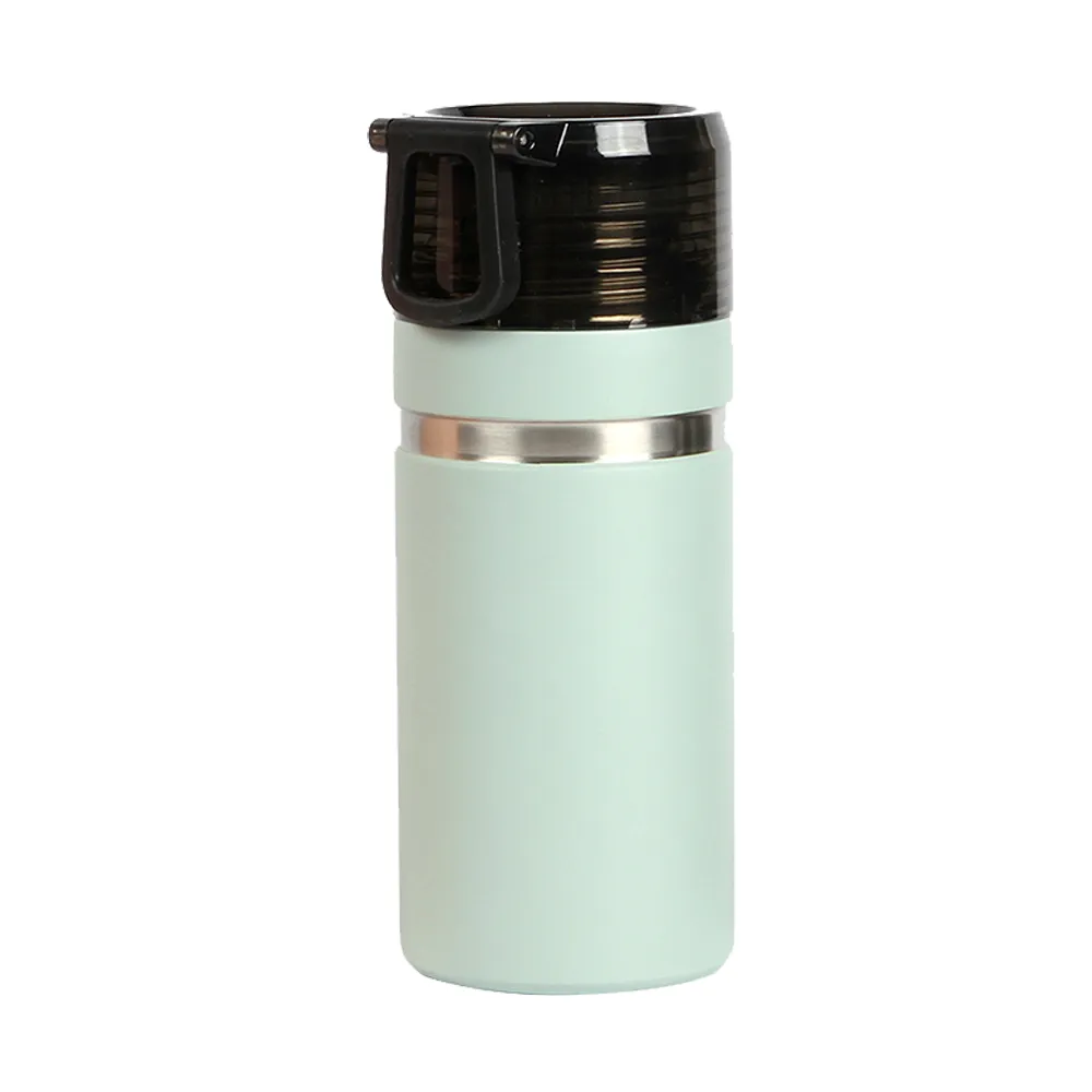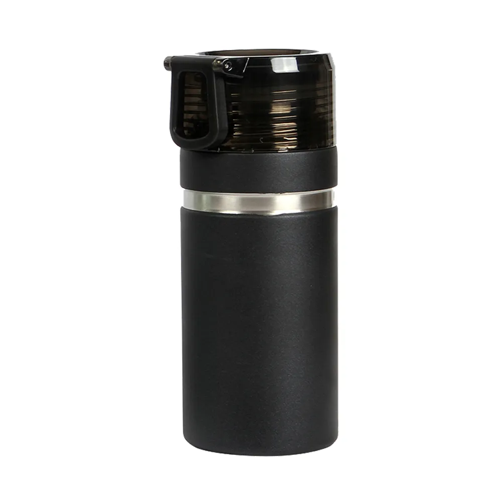 Termo de acero inoxidable doble pared con tapa y asa de plástico. Fabricado en materiales de grado alimenticio, mantiene bebidas frías o calientes por un largo tiempo. No usar en microondas. Capacidad de 500 ml. Incluye caja de cartón individual.