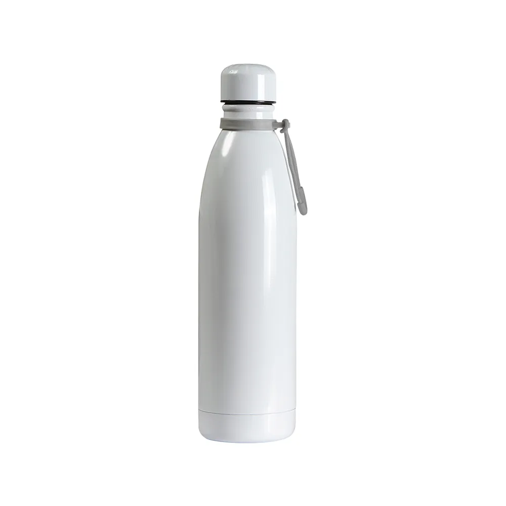 Termo de acero inoxidable doble pared con tapa de rosca y cordón en el cuello para su fácil transporte.Está fabricado en materiales de grado alimenticio y el acero inoxidable permite mantener tus bebidas frías o calientes por un largo tiempo. No usar en microondas. Capacidad de 750 ml, Incluye caja individual