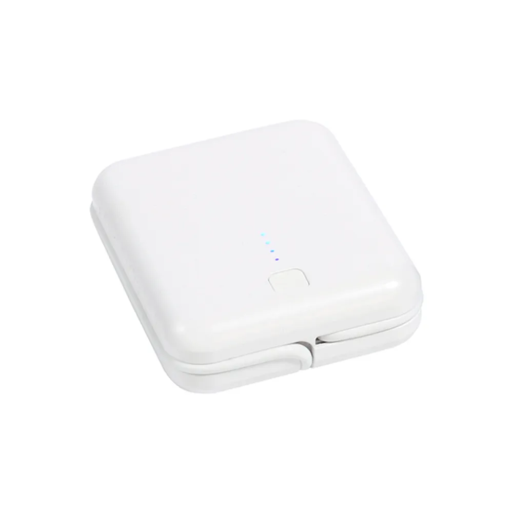 Power bank pocket fabricada en ABS con cable duo para IOS y android, capacidad de 5,200 mAh.