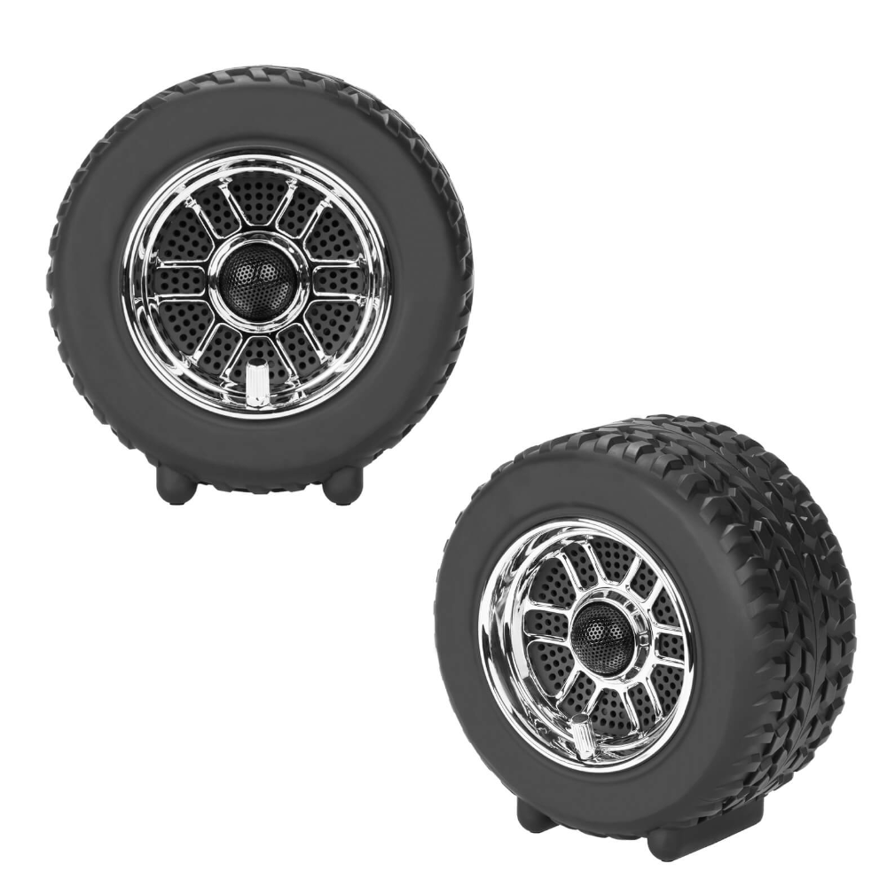 Bocina inalámbrica con función bluetooth, asa en la parte superior, con una placa en la parte frontal para grabar, botones en la parte superior, carga a través de cable USB (incluido), cable auxiliar para audio y caja individual de cartón.