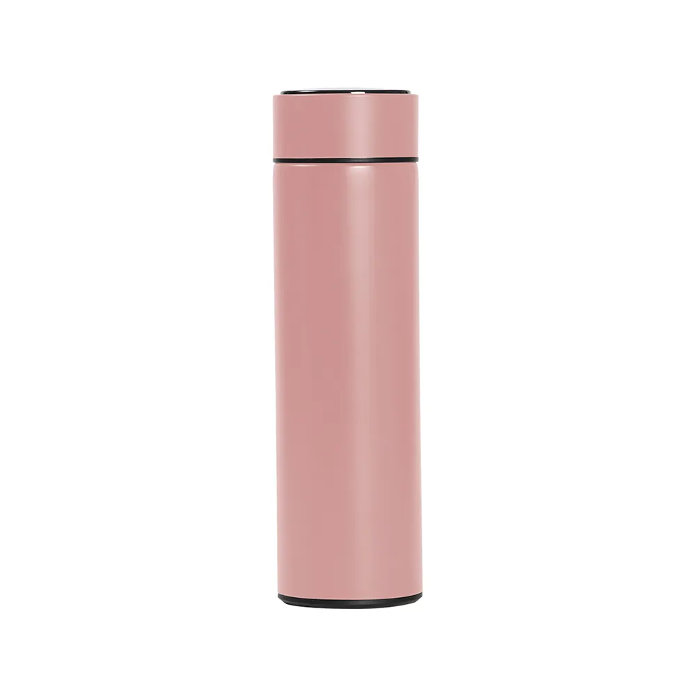 Termo inteligente de acero inoxidable doble pared; con pantalla LED indicadora de temperatura interior en la tapa. Fabricado en materiales de grado alimenticio, mantiene bebidas frías o calientes por un largo tiempo. La batería dura hasta 2 años. No usar en microondas. Capacidad de 500 ml. Incluye caja de cartón individual.