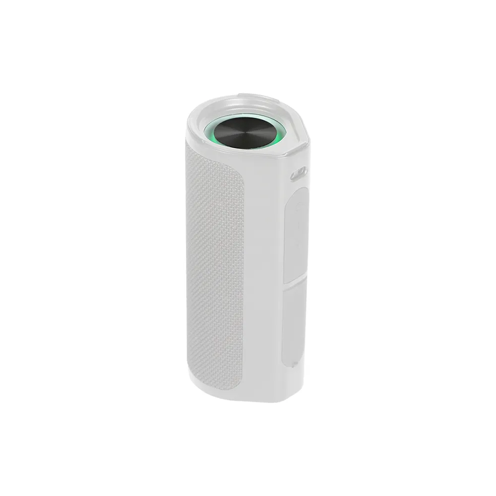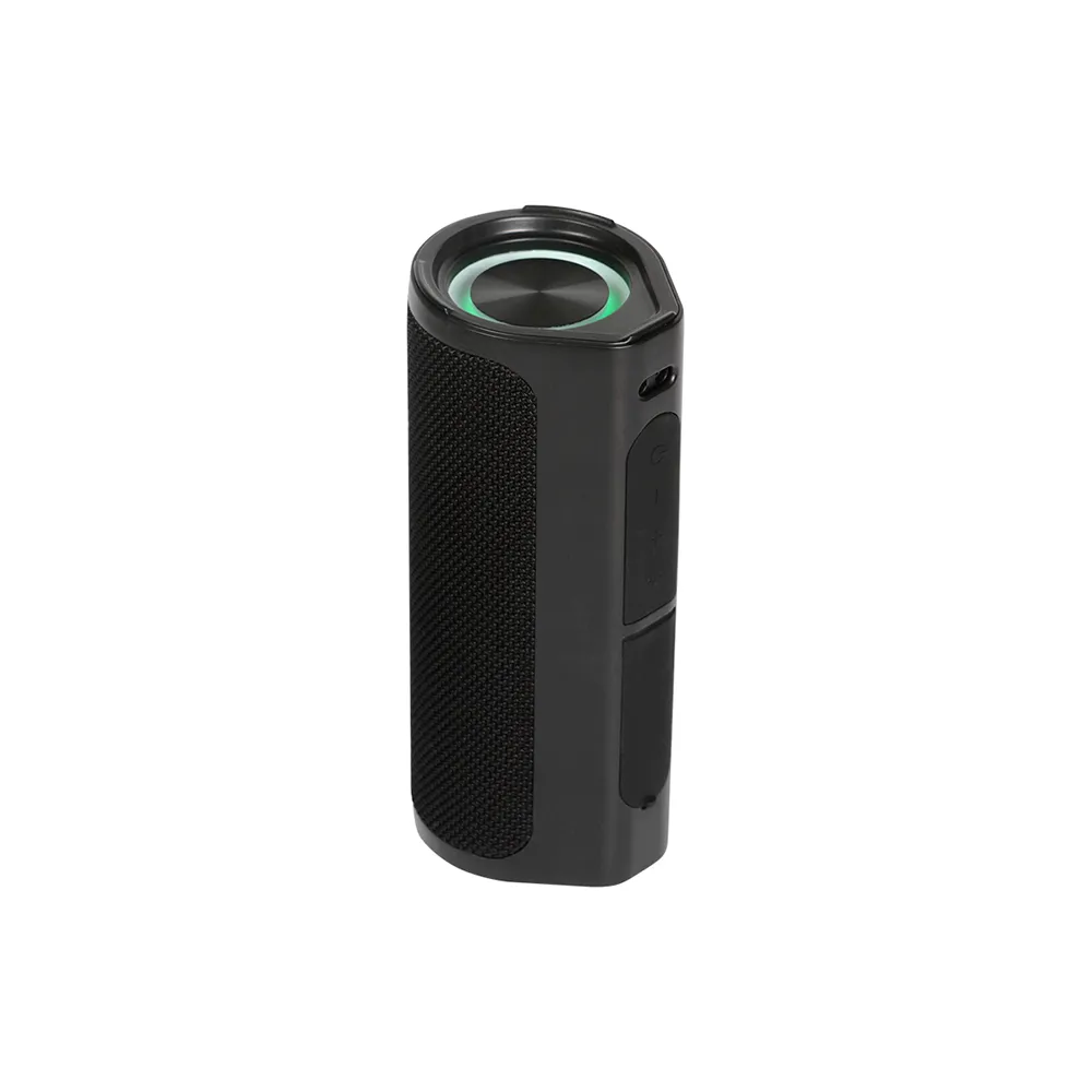 Bocina Bluetooth cilindrica con radio FM y entrada para tarjeta TF, fabricada en ABS, silicón y tela. Con iluminación en los latabricada en ABS, silicón y tela USB (incluido).