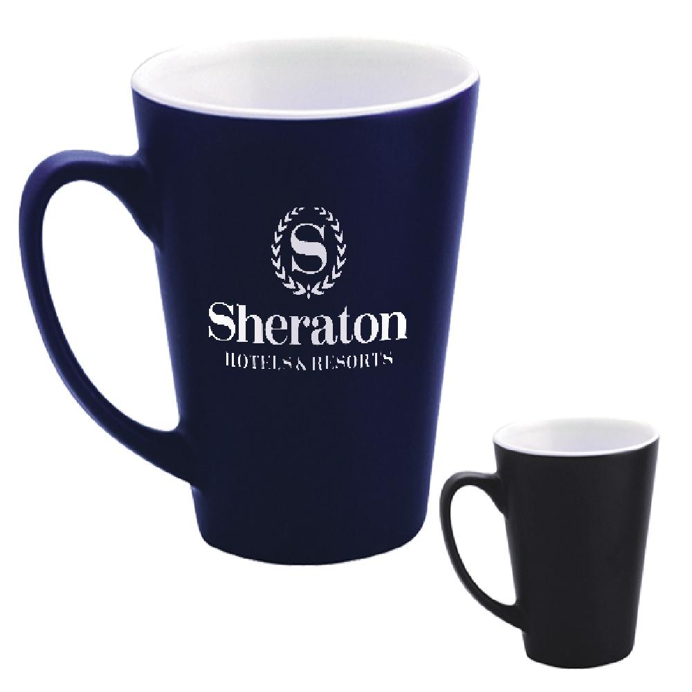 Taza cónica bicolor con exterior mate e interior blanco brillante. CAP. 325 ml (11 OZ). Venta en múltiplos de 12.