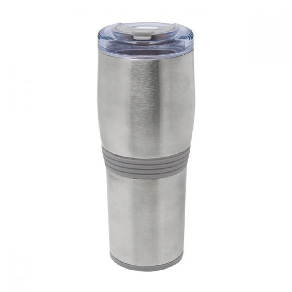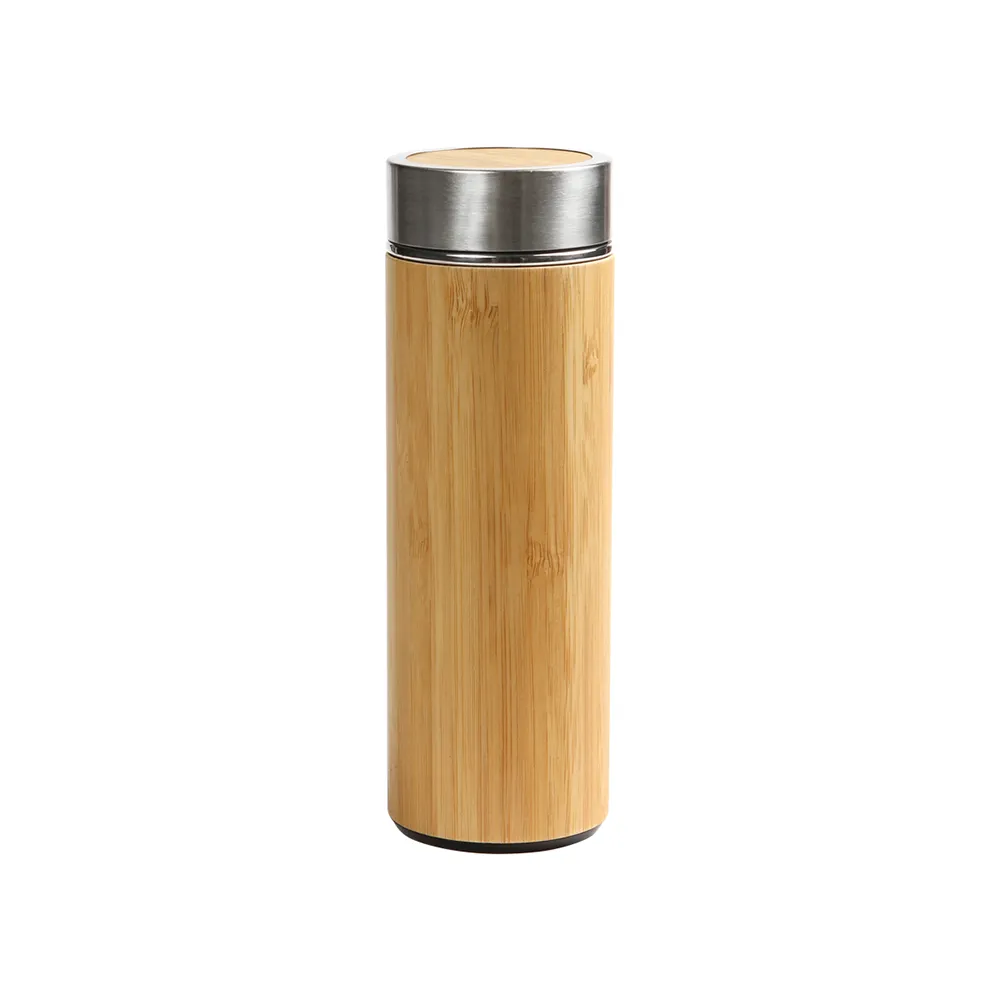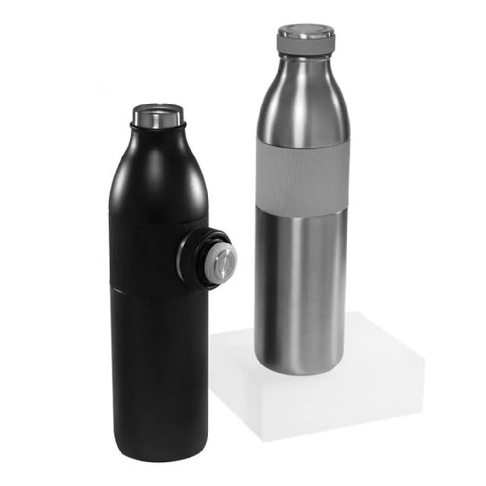 Doble pared. Pared interna plástico, pared externa acero inoxidable. Base de termo con forma hexagonal. Tapa de plástico con boquilla y sobre tapa de cierre a presión. Terminado mate. Incluye caja individual