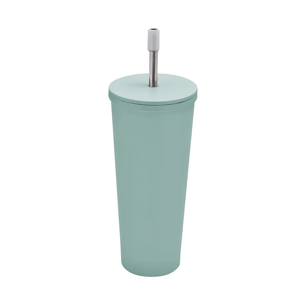 Doble pared. Pared interna y externa de acero inoxidable. Sellado al vacío. Mantiene temperatura caliente 8 hrs y temperatura fría 10 hrs aproximadamente. Tapa de metal con plástico, cierre de rosca. Incluye popote metálico con boquilla de silicón. Incluye caja individual