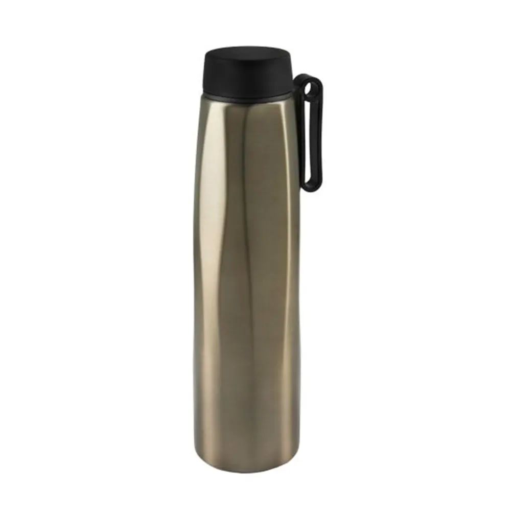 Doble pared. Cerrado al vacío. Pared interna y externa acero inoxidable. Tapa de rosca con terminado rubber para grabado efecto espejo. Incluye asa y caja individual.