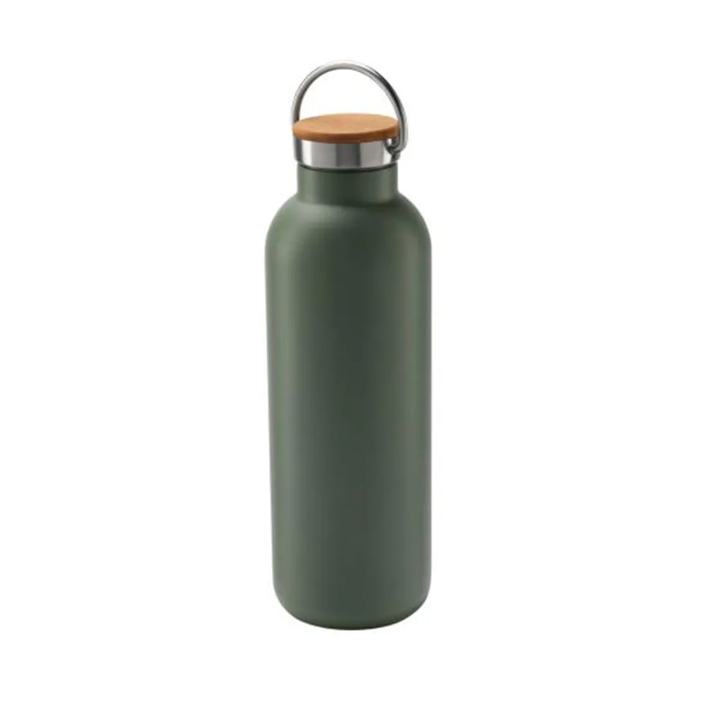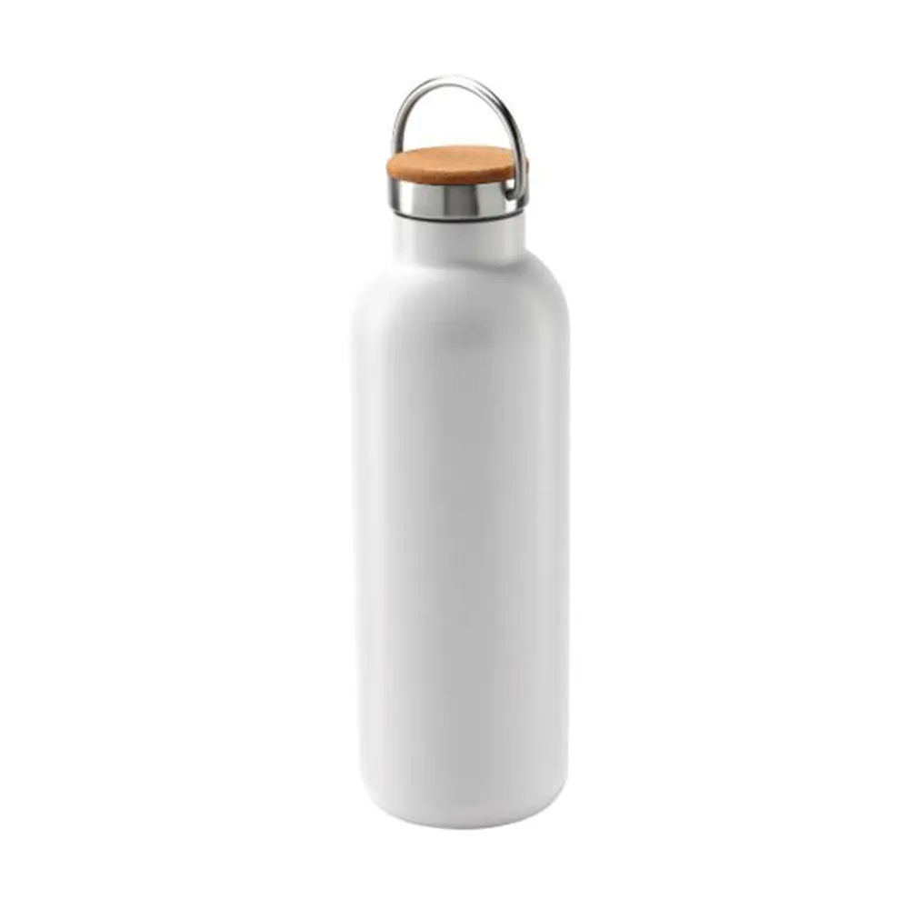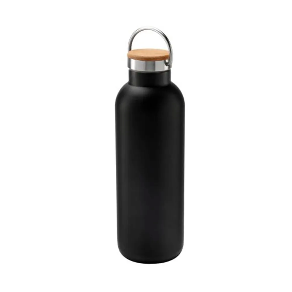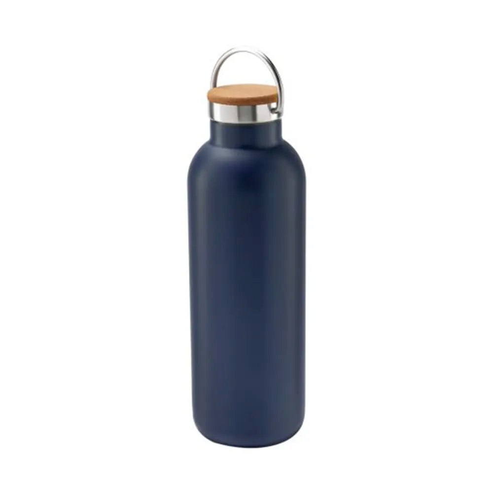 Doble pared. Cerrado al vacío. Pared interna y externa de acero inoxidable. Tapa con sistema de rosca de acero inoxidable con corcho y asa metálica. Mantiene temperatura caliente 6 hrs y temperatura fría 12 hrs. Incluye caja individual.