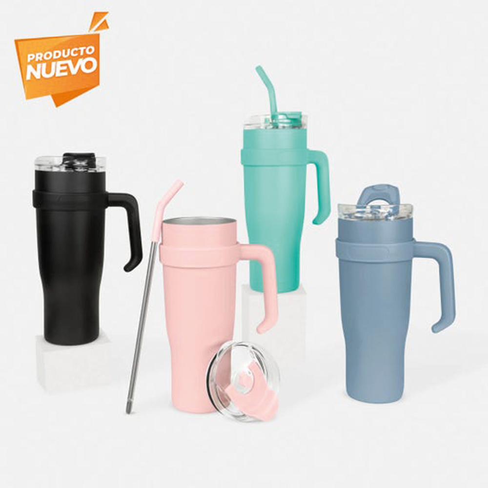 Doble pared. Cerrado al vacío. Pared interna y externa de acero inoxidable. Tapa de plástico con sistema de rosca, sobretapa de silicón y aro metálico removible. Mantiene temperatura caliente 6 hrs y temperatura fría 8 hrs aproximadamente. Incluye caja individual.