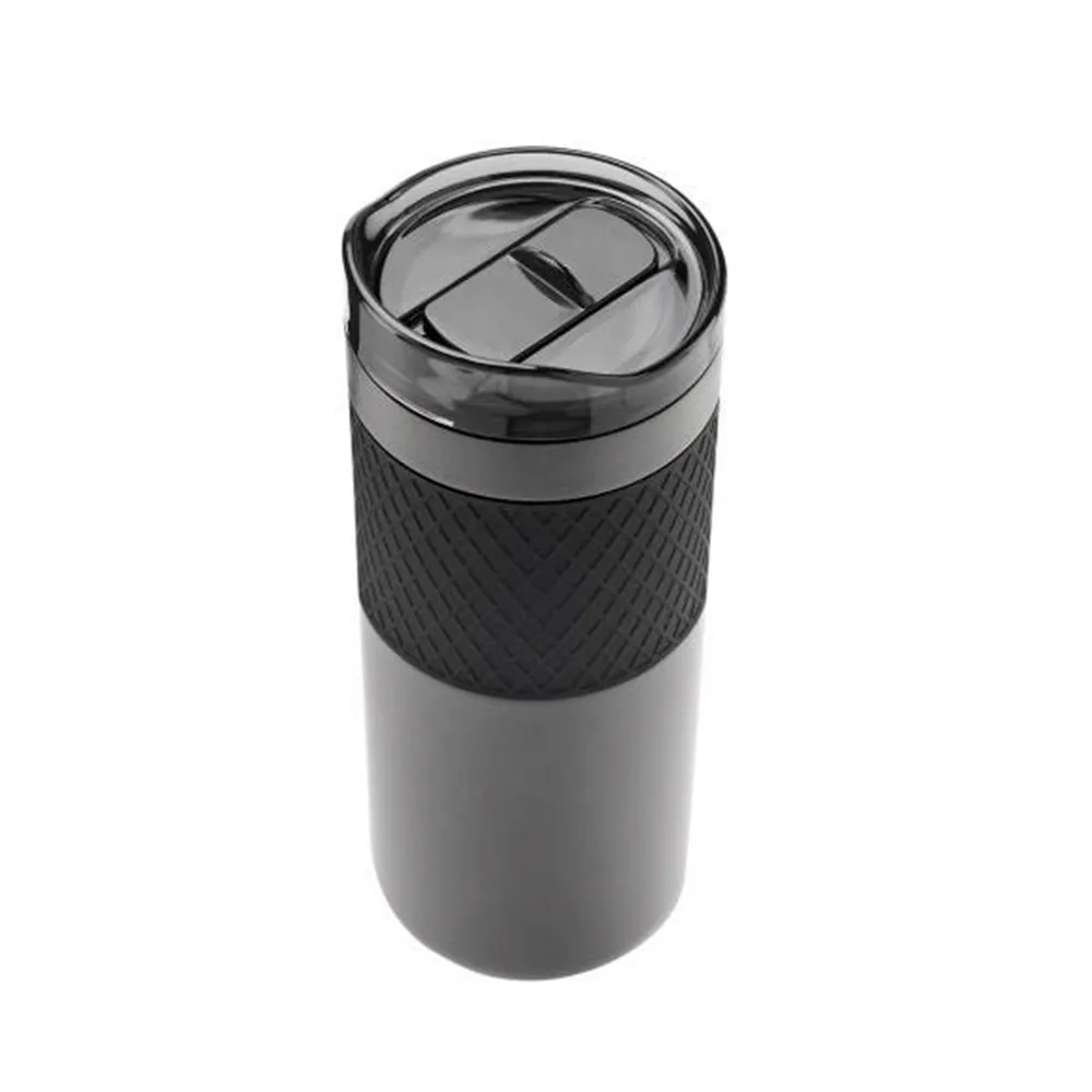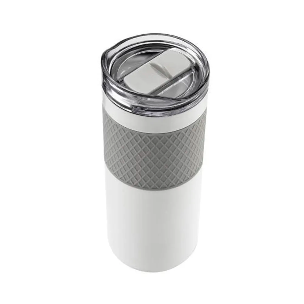 Doble pared. Cerrado al vacío. Pared interna y externa de acero inoxidable. Incluye tapa de plástico con cierre de rosca y válvula de seguridad. Banda de silicón texturizada antiderrapante. Mantiene temperatura caliente 6 hrs y temperatura fría 8 hrs.Incluye caja individual.