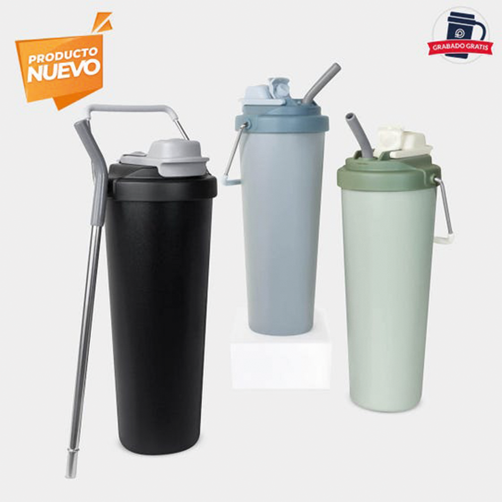 Doble pared. Cerrado al vacío. Pared interna y externa de acero inoxidable. Tapa de plástico bitono con sistema de rosca y asa de silicón. Mantiene temperatura caliente 6 hrs y temperatura fría 8 hrs aproximadamente. Incluye caja individual.