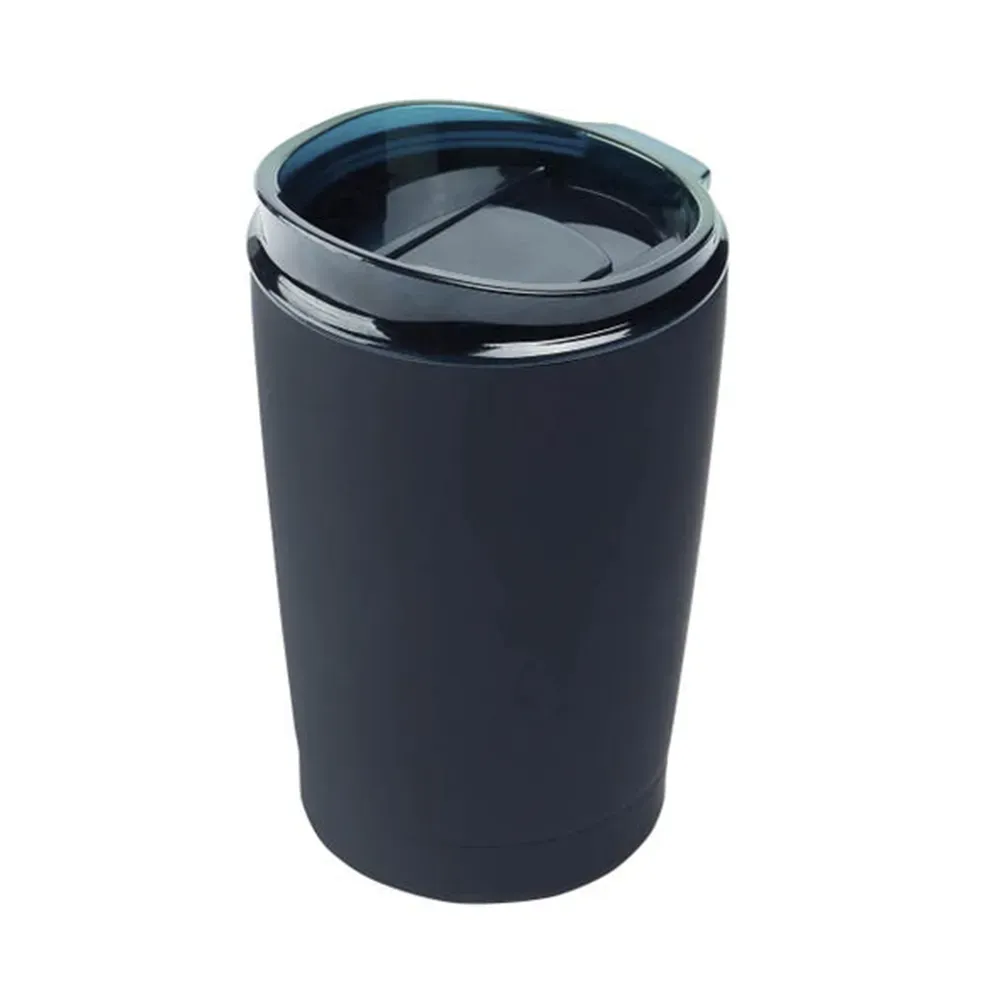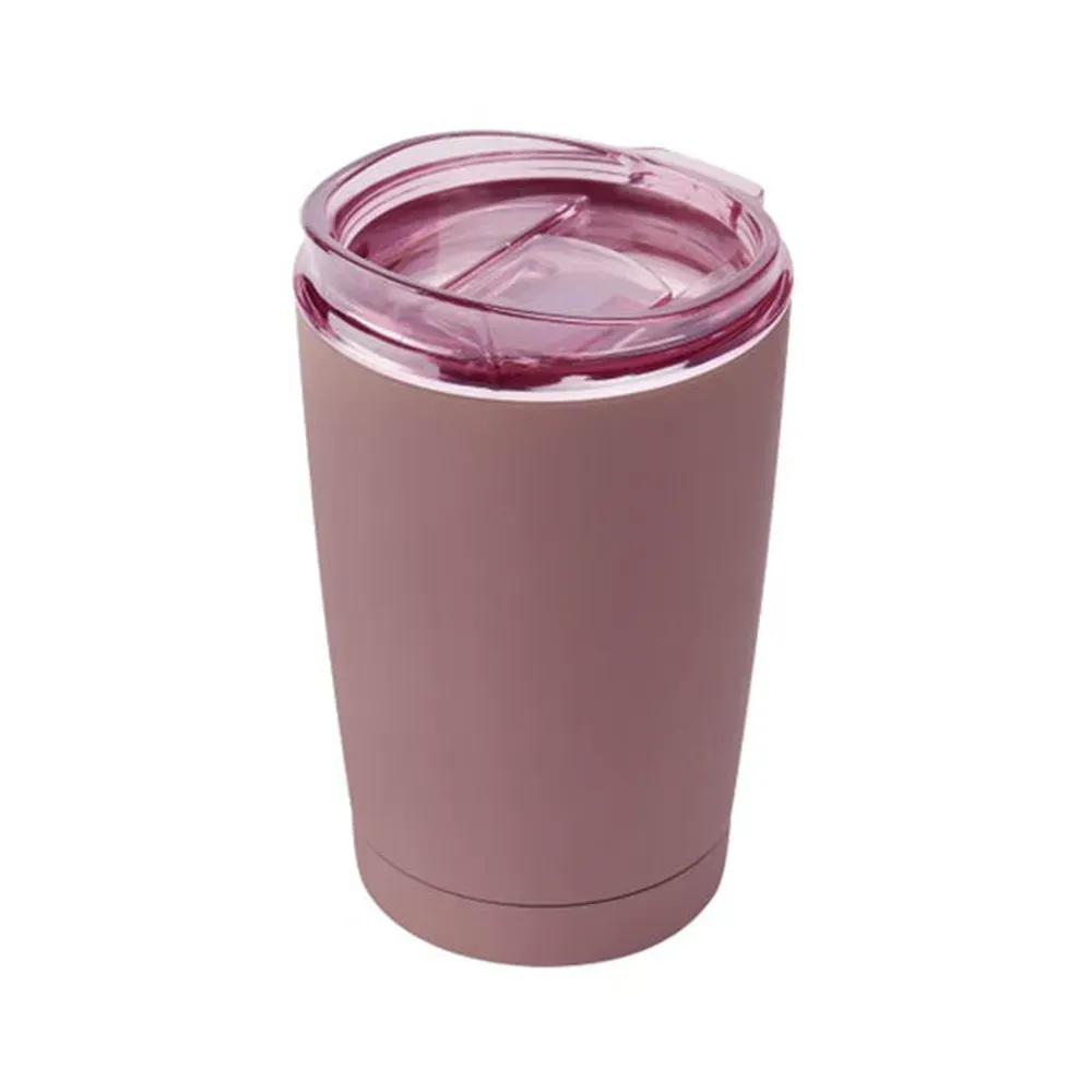 Termo doble pared. Cerrado al vacío. Pared interna y externa de acero inoxidable. Tapa de plástico con válvula de seguridad y diseño ergonómico en la boquilla. Su cuerpo con terminado rubber lo hace suave al tacto y ayuda a tener un mejor agarre. Mantiene la temperatura caliente 6 hrs y temperatura fría 12 hrs aproximadamente. Capacidad de 12 Oz. Base de 7.2 cm de diametro Incluye caja individual.