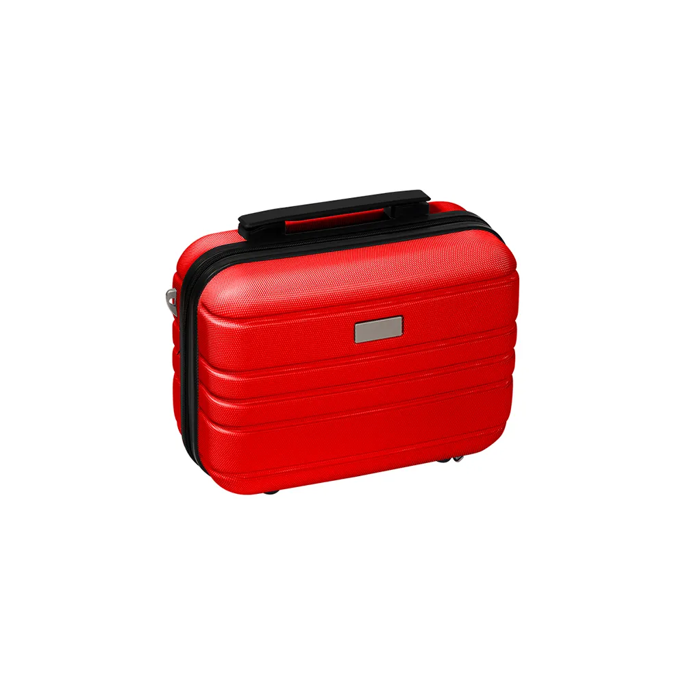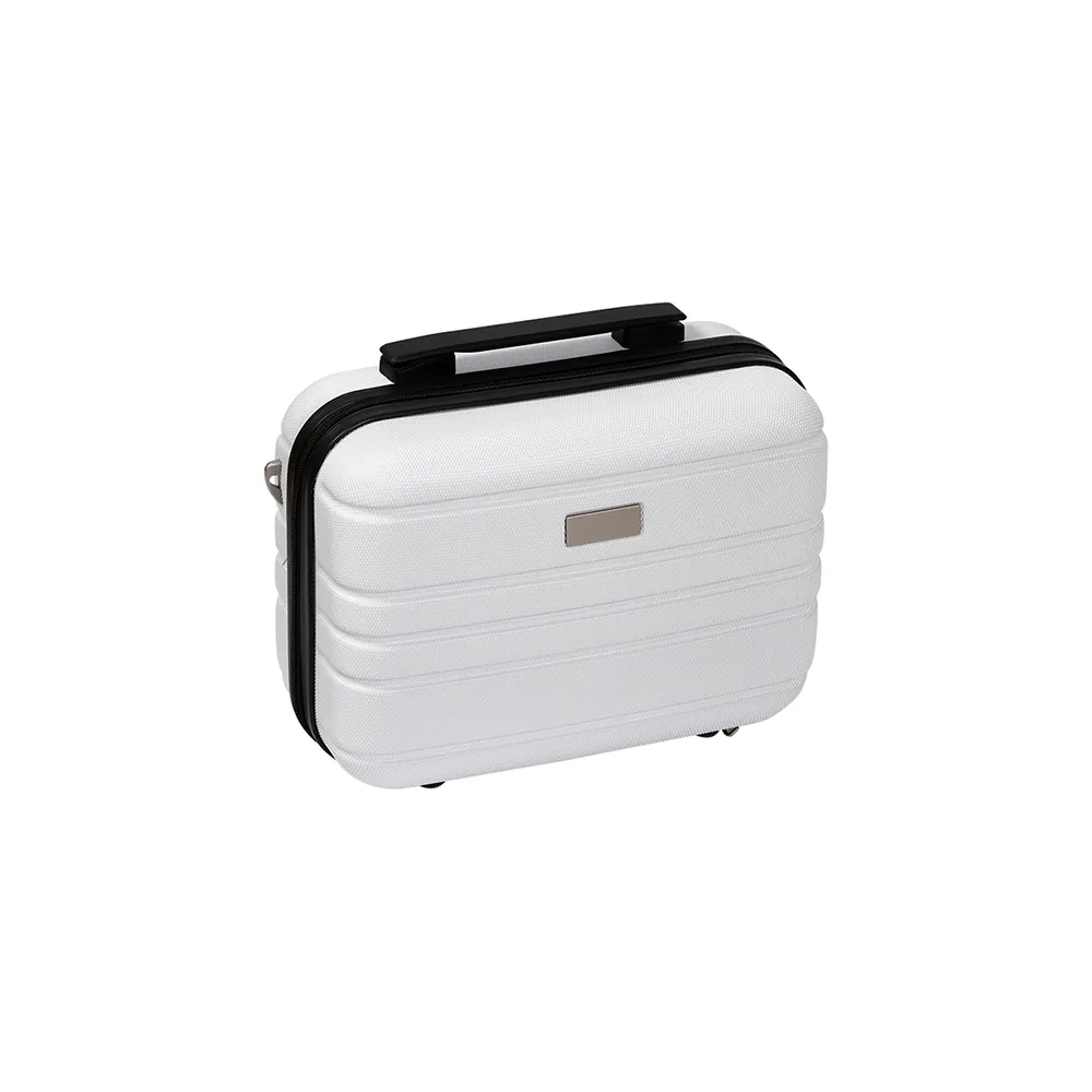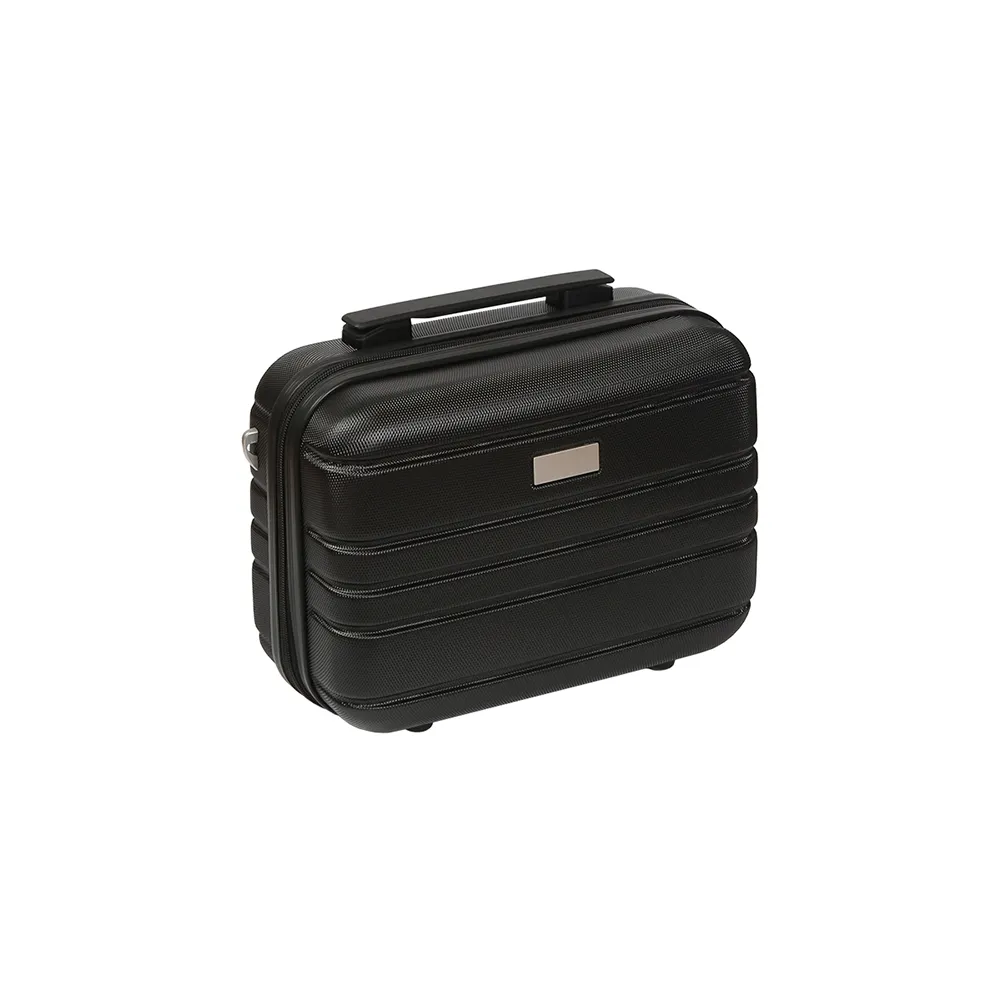 Neceser para viaje fabricado en plástico ABS con interiores de poliéster. Incluye placa metálica para grabado laser, banda elástica, asa superior y correa de hombro ajustable.