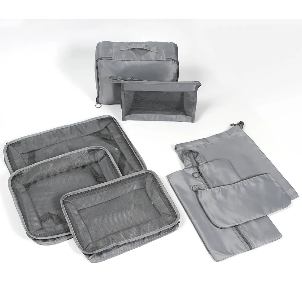 Set de 8 bolsos organizadores de equipaje, fabricados en poliéster de alta calidad, es duradero y tiene una textura suave, incluye 3 bolsos para lavandería en 3 medidas diferentes, bolso para ropa interior, para calzado, artículos de aseo personal, para cosméticos y bolsa multiusos con jareta, este articulo es tu compañero perfecto para viajar, acampar, separa ropa de gimnasio o ir a la playa. Creadas con tela de revestimiento son impermeables y enmalladas en poliéster, altamente resistente, repele el agua, a prueba de polvo y transpirable, evita el crecimiento de bacterias, reduce olores, organiza el espacio de tu equipaje de una manera razonable sin líos haciendo espacio suficiente para todo.
