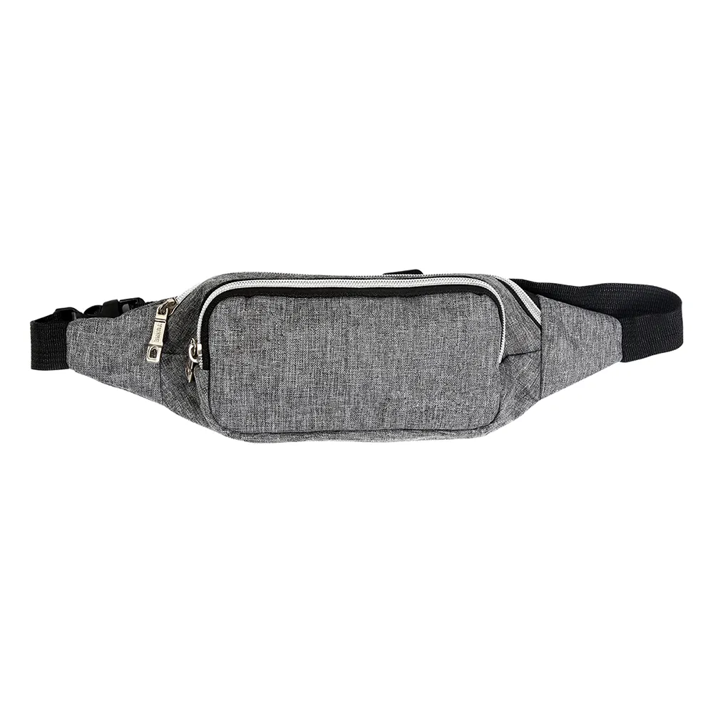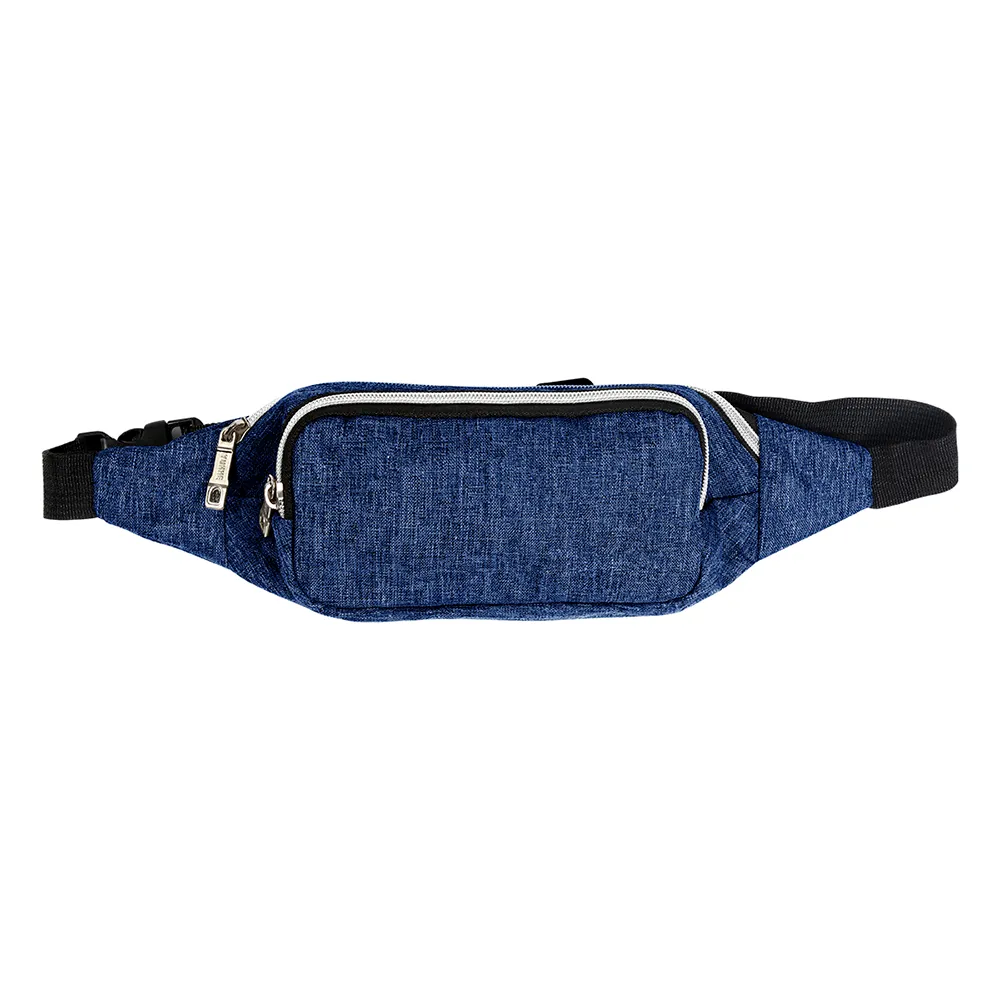 Cinturón deportivo ( cangurera ) fabricado en poliéster, nylon y polipropileno; doble bolsa con cierre, correa ajustable y resistente con broche de seguridad. Excelente tamaño para guardar varios artículos como celular, monedas y audífonos.